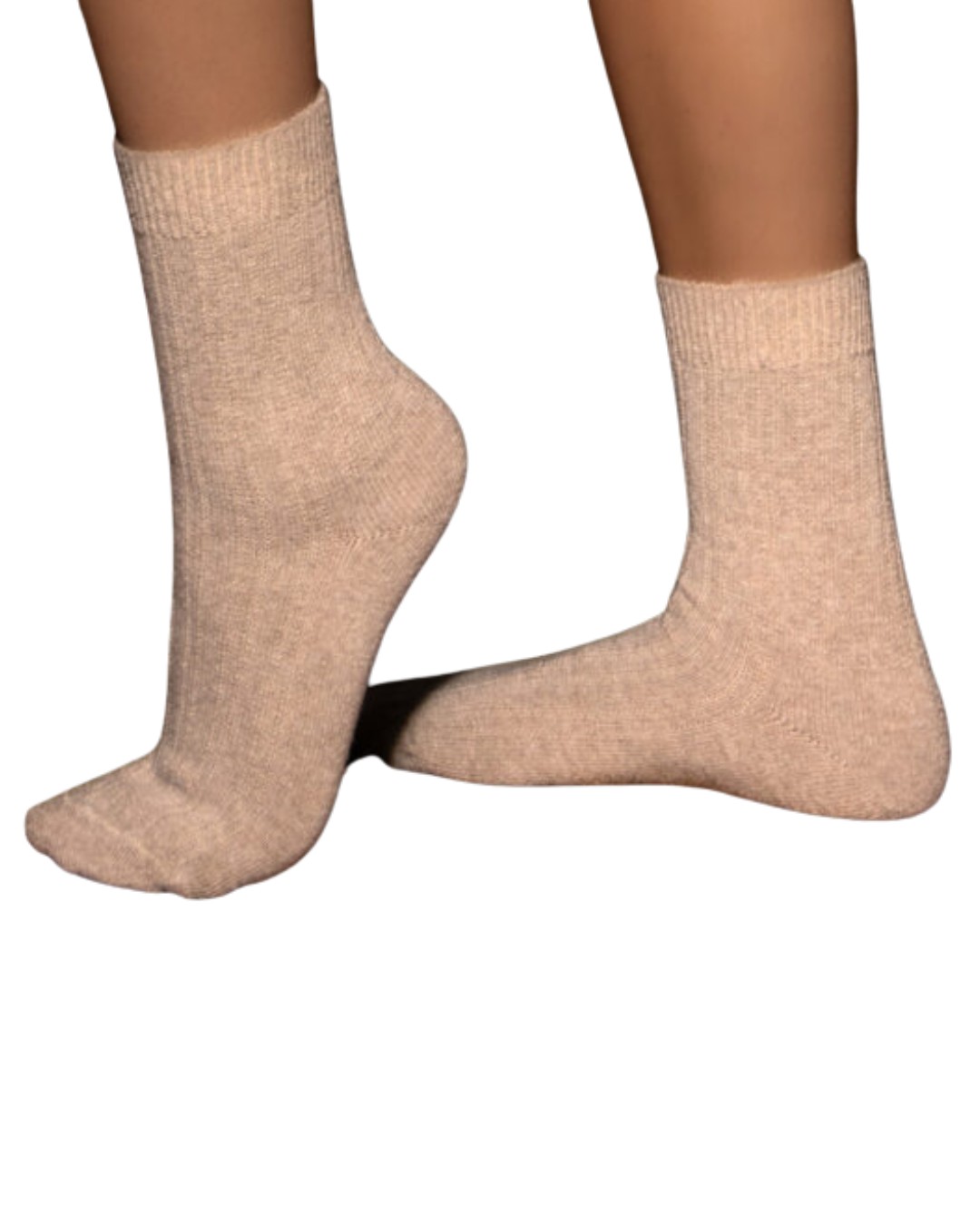 Wool and cahsmere ribbed ankle sock, simple elastic band.