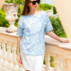 Top senza maniche in viscosa e cotone sangallo con ricamo floreale tono su tono. Scollo tondo e linea dritta per una vestibilità essenziale ma elegante.