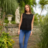 Maglia bicolore a mezze maniche in viscosa e lurex. Scollo a V profondo. Vestibilità fluida.
