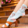 Calzino in rete fine con motivo floreale a incastro. Morbido bordino elastico.