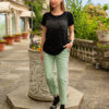 Pantalone a trombetta in fresco cotone. Morbido elastico in vita.